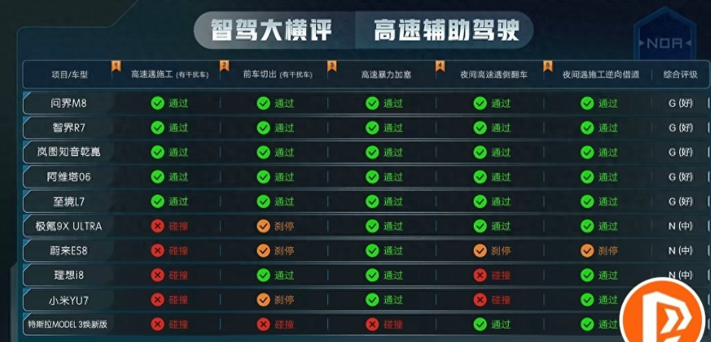 权威测试的严格标准,成了智驾技术的 “试金石”:中汽研城市智驾测试:聚焦复杂路况的实际应对能力,涵盖路口转弯、行人避让、加塞处理等核心场景。参与测试的多款车型中,仅华为五界中定位最低端的尚界品牌,不仅顺利通过所有必测项目,还拿下四项附加测试的全满分,相当于 “考试及格线都达不到的同学里,有人考了满分还超额完成任务”。太平洋汽车网高速横评:13 款热门车型在相同环境、相同标准下同台竞技,测试包含自适应巡航、车道保持、紧急避险等五大核心项目。结果搭载华为 ADS 的四款车型无一失手,全部一次通关;而另外八款车型要么部分项目失败,要么频繁触发人工接管,其中某销量顶尖的新势力品牌,更是五项测试全败,反差强烈。“以前看车企宣传,都说自己智驾‘能打’,现在测试结果一出来,差距肉眼可见。” 网友直言,权威测试的 “盲测式” 对比,比车企的自我宣传靠谱多了。