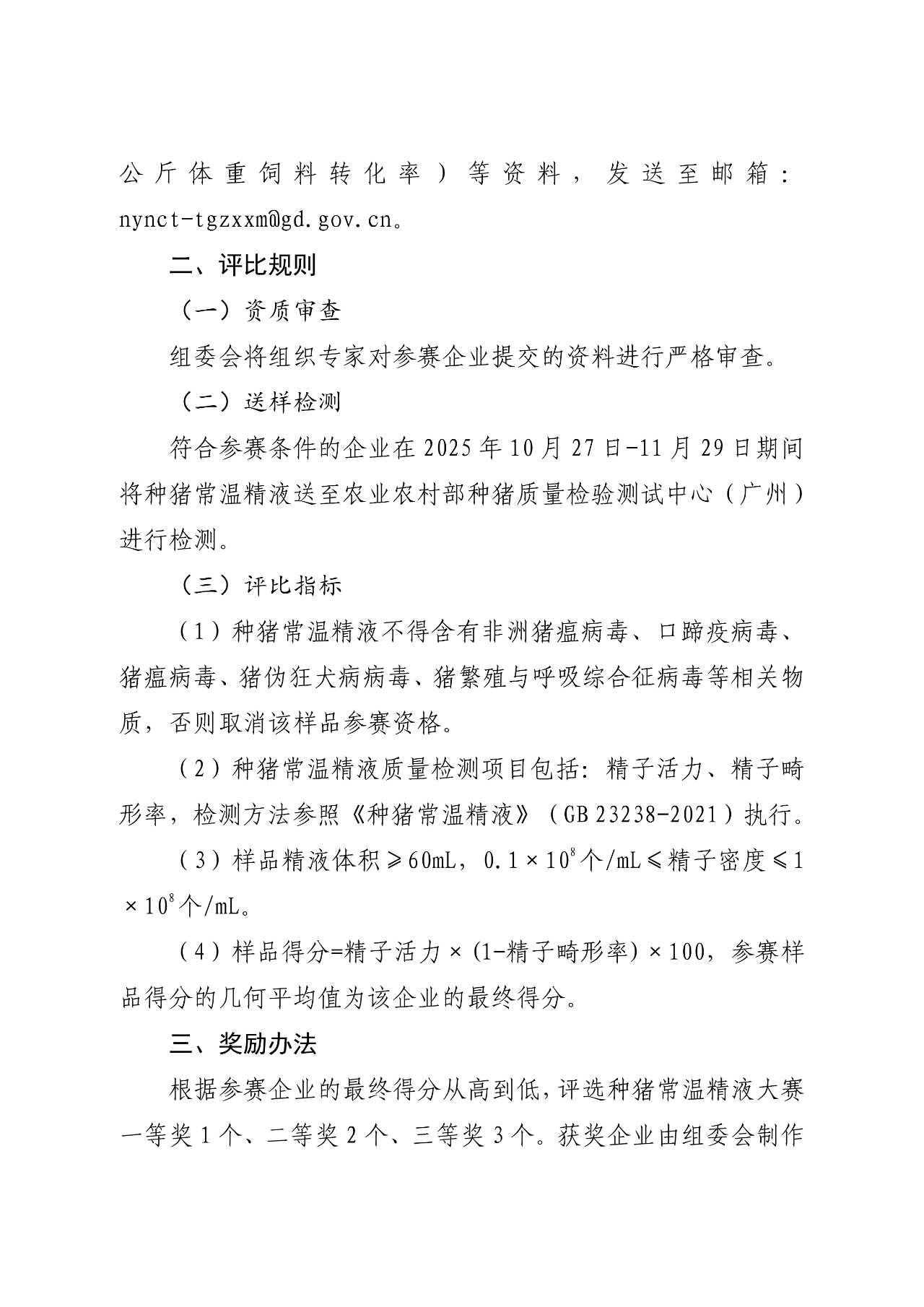 猪业振兴,良种先行。为推动生猪种业高质量发展,持续展示我国生猪产业核心竞争力,由广东省农业技术推广中心主办的2025年种猪精液大赛火热进行中。本次大赛为第五十二届养猪产业大会(广州)同期重点活动之一,将于2025年12月13日大会闭幕式上为获奖企业颁奖。作为参赛单位,天种韶关诚邀行业企业共同参与见证。