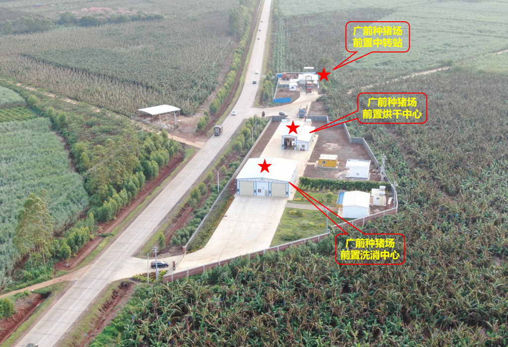 广东广垦广前种猪有限公司是广东广垦畜牧集团股份有限公司的曾祖代种猪繁育基地,于2020年1月从法国引种后正式投产。种猪场位于广东省湛江市遂溪县洋青镇八山村队,占地约244亩,总投资13481.8万元,建筑面积37154.07平方米,场区建设各类猪舍和配套辅助区共计30889.37平方米,设计存栏生产母猪2400头,年可出栏各类生猪48000头。