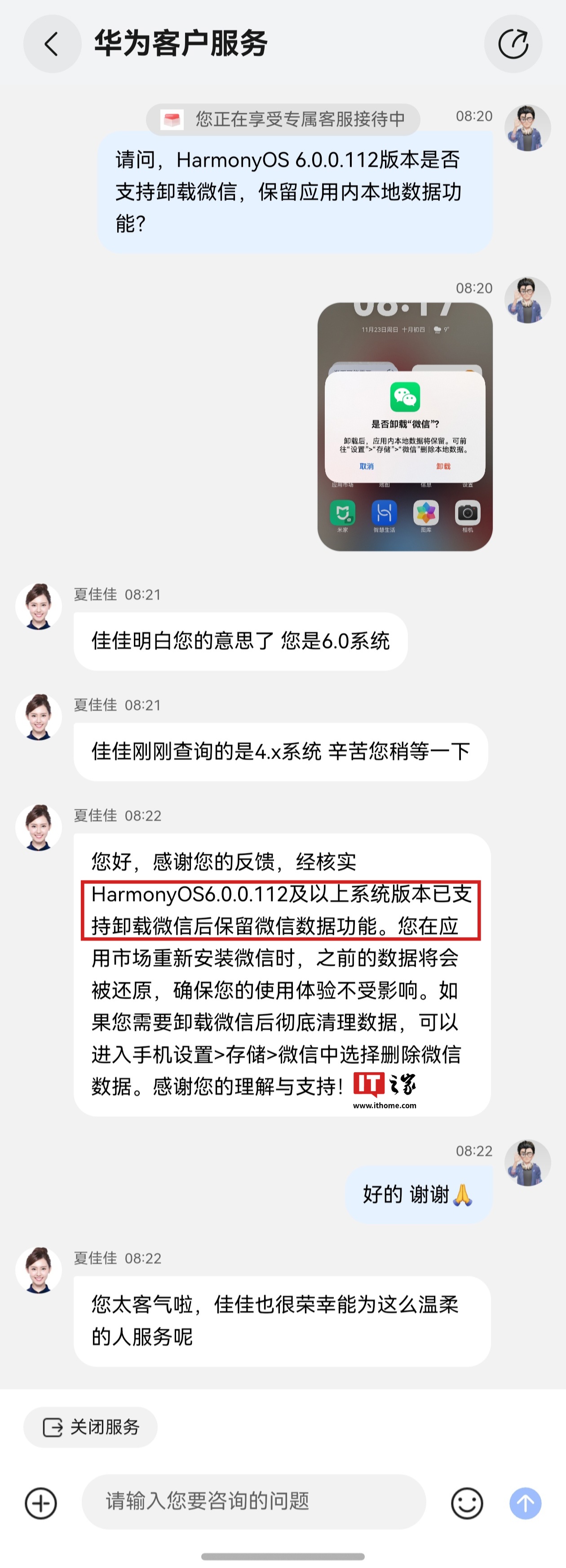 IT之家实测发现,升级至 HarmonyOS 6.0.0.112 SP12 版本后,卸载微信将提示: