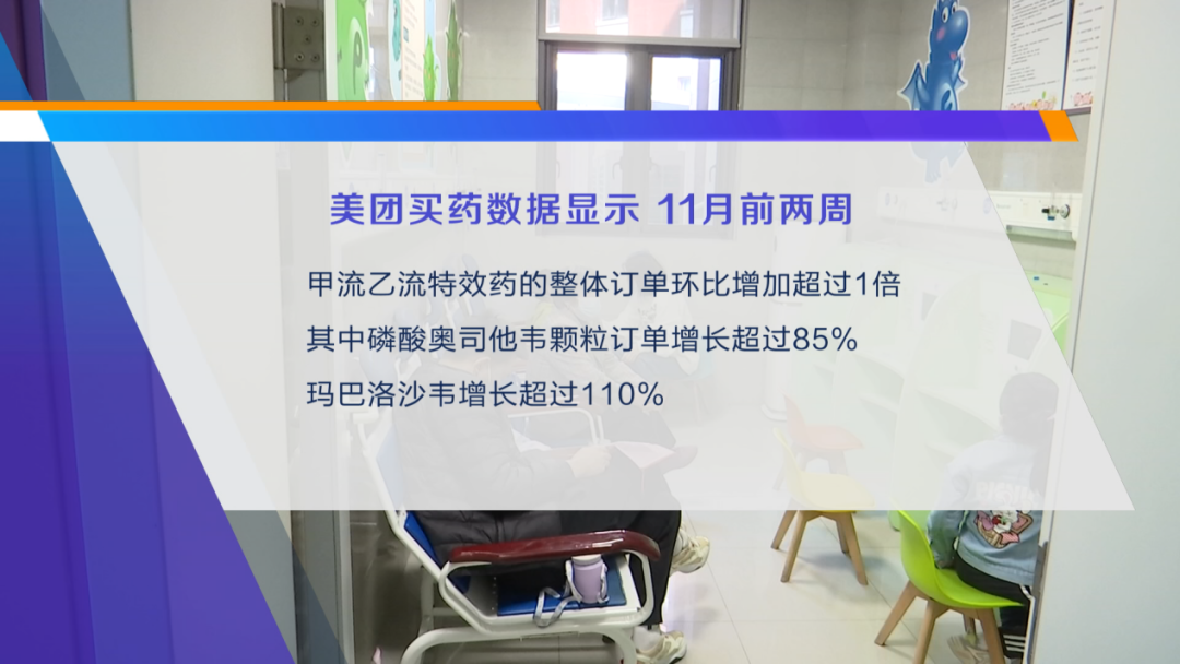 来自美团买药平台数据显示,11月前两周,甲流特效药订单环比翻倍。其中:奥司他韦颗粒增长85%,玛巴洛沙韦(速福达)增长超过110%。
